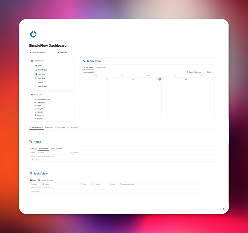 Notion templates can be complicated—but SimpleFlow isn’t. This easy-to-use system is designed for everyday people who want a simple way to keep track of their tasks, projects, and notes—all in one place.
